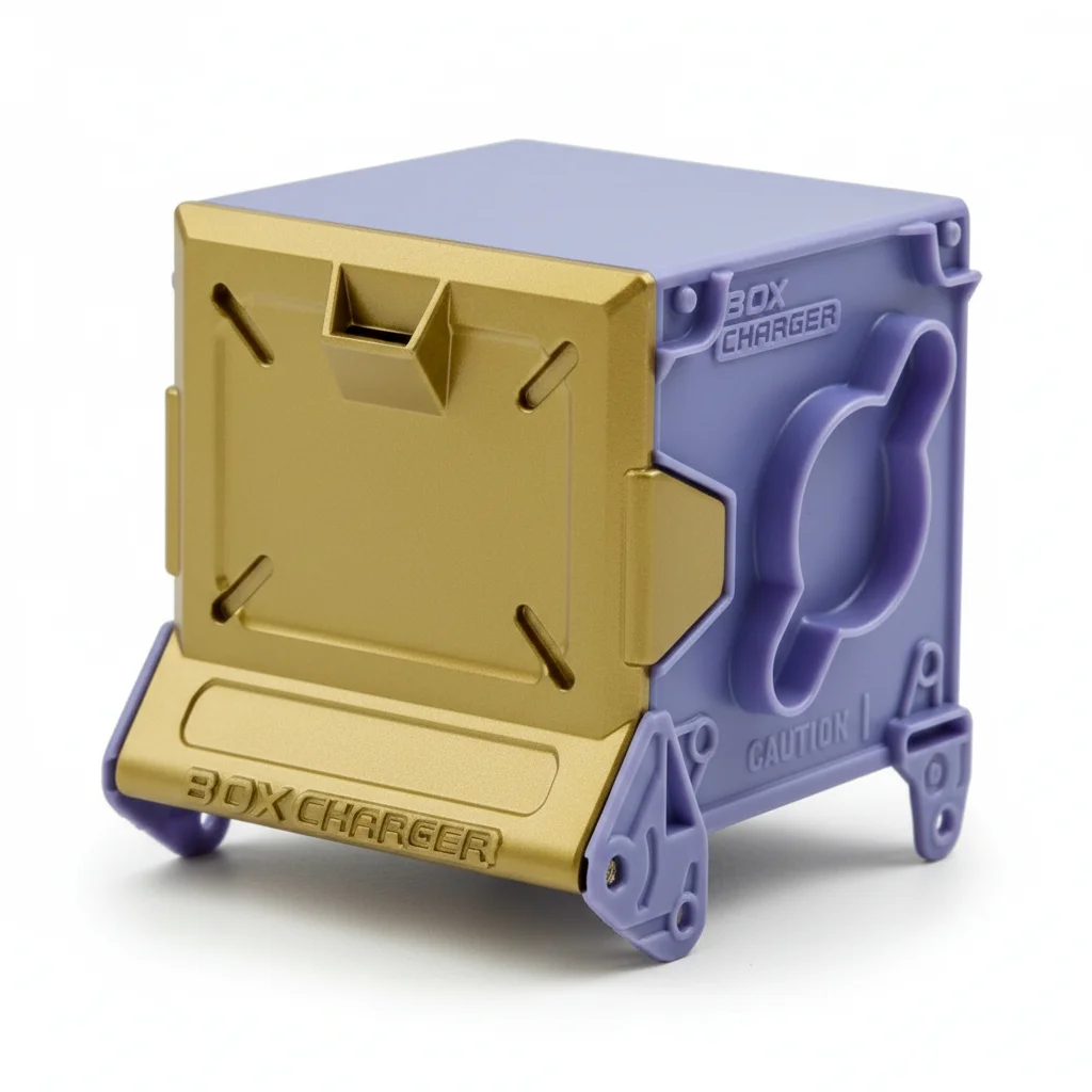 A basic purple BeastBox box charger with a gold door.