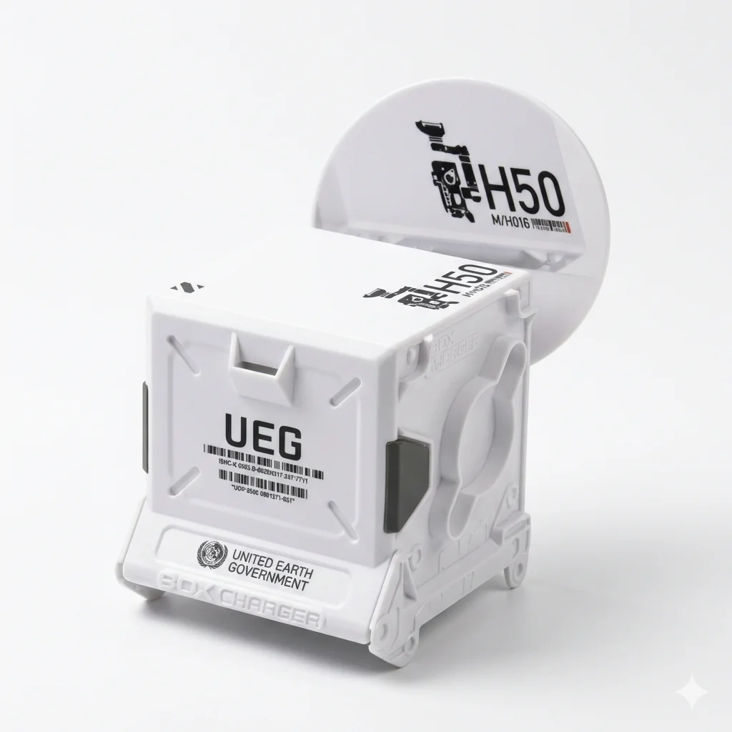 A white BeastBox box charger with Wandering Earth United Earth Government decos and black tabs. Part of the 550W & 550C 2-pack.