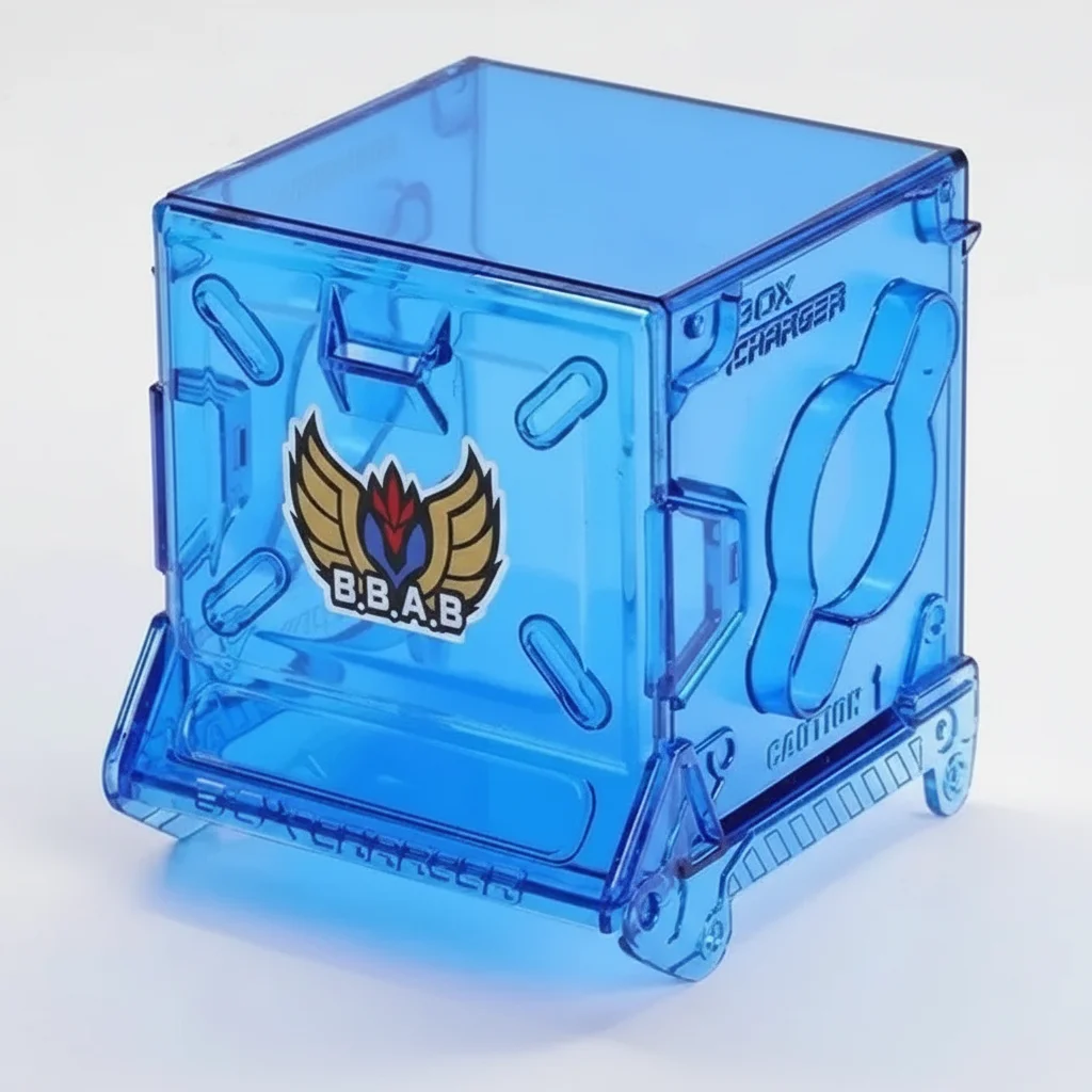 A transparent blue box charger featuring the BBAB logo on the front of the box charger door. Packaged with the BeastBox Air Force 3-Pack.