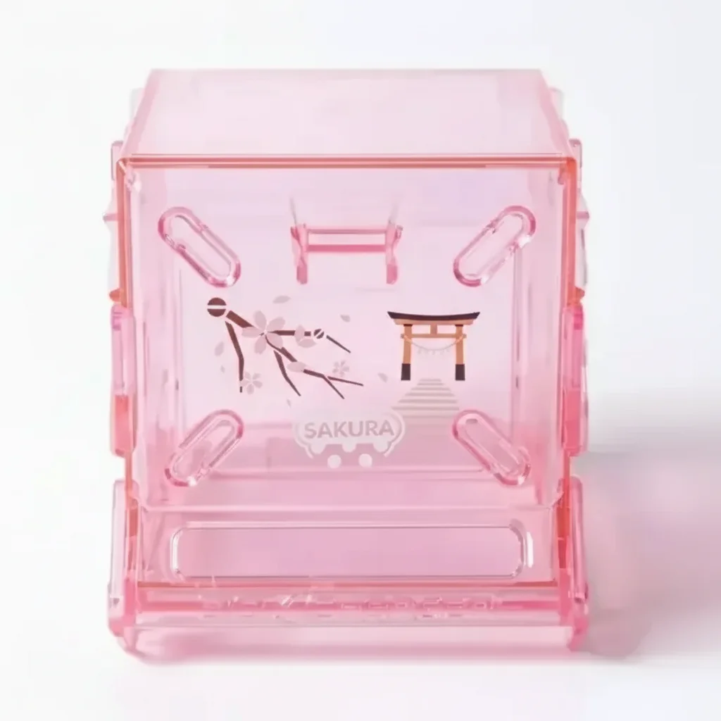 A transparent pink BeastBox box charger featuring the word "Sakura" and a graphic of Mt. Fuji with cherry blossoms. Packaged with Rhapsody.
