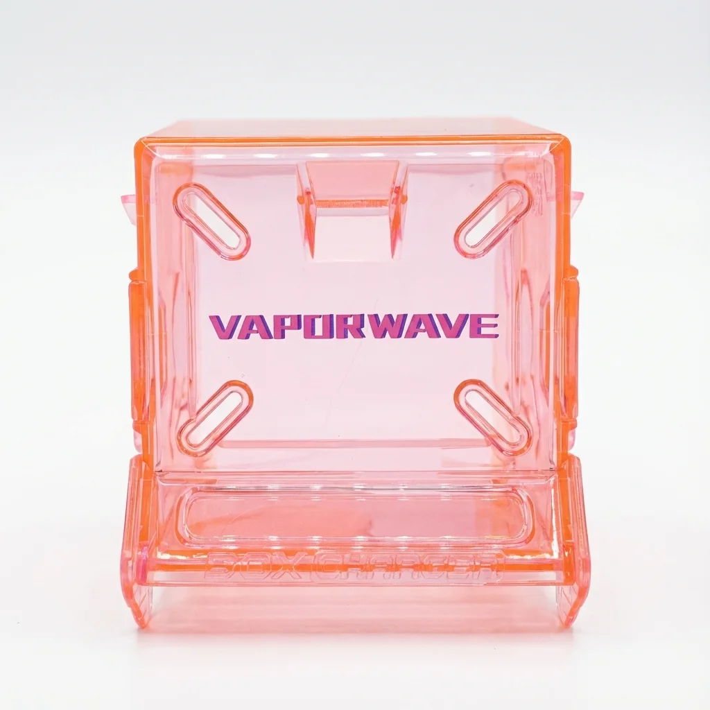 A transparent pink BeastBox box charger featuring the text "Vaporwave" done in a retro 80's style. Packaged with Vaporwave.