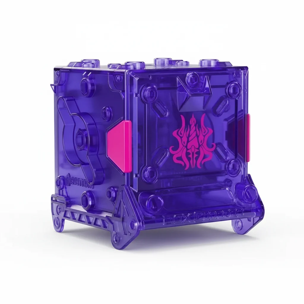 A translucent purple BeastBox box charger featuring a pink stylized squid graphic on the front with pink tabs. Packaged with Vortex.